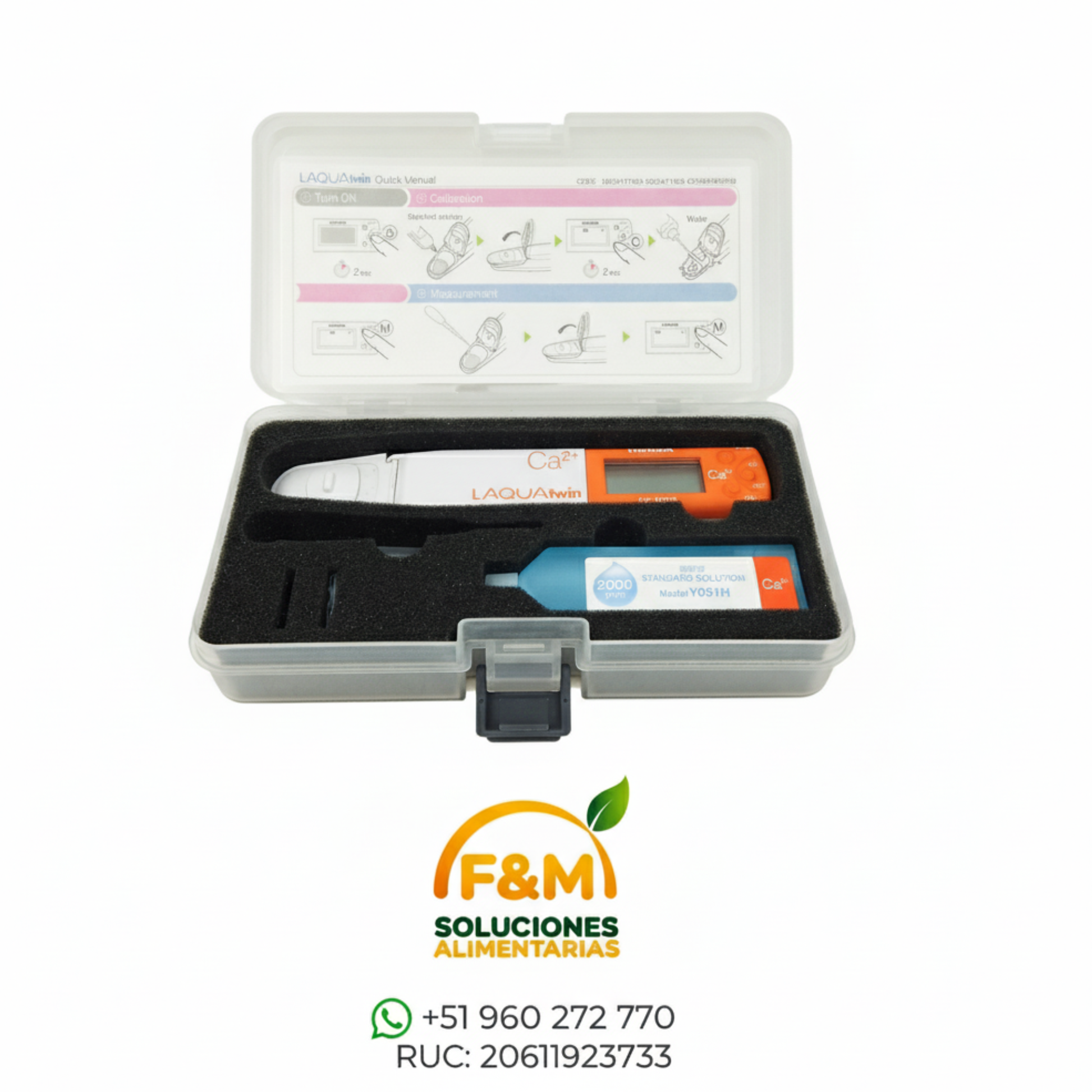 Medidor de bolsillo para ion Calcio (Ca2+), ideal para agricultura (savia, suelo) y análisis de alimentos. Utiliza un sensor plano de ion selectivo (ISE) para mediciones rápidas en micro-muestras (0.3 mL).