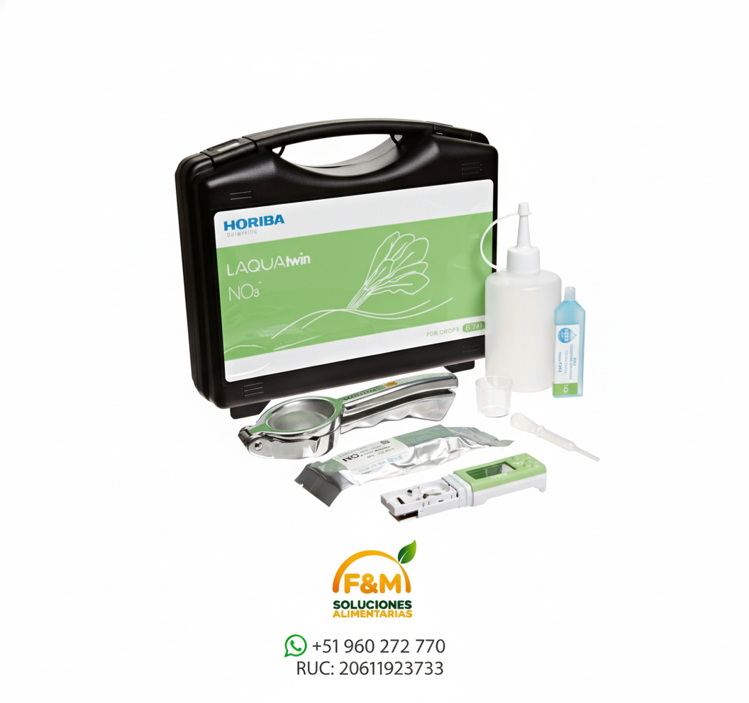 Medidor de bolsillo para ion Nitrato (NO3-), ideal para agricultura (savia, suelo) y análisis de alimentos. Utiliza un sensor plano de ion selectivo (ISE) para mediciones rápidas en micro-muestras (0.3 mL).